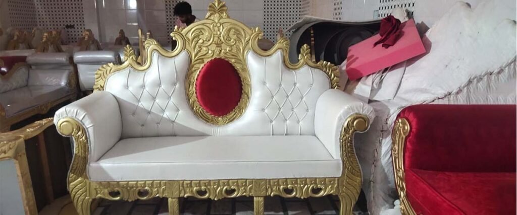 Our Wedding Sofas are crafted to add grace, comfort, and style to your special occasions. Perfect for weddings, engagements, and events, these sofas are designed with exquisite detailing and premium materials to create a stunning centerpiece for your stage or décor.With comfortable seating and luxurious finishes, our Wedding Sofas enhance the ambience while providing a regal experience for the couple and guests. Available in customizable designs, they combine aesthetic appeal and durability, making them an ideal choice for creating unforgettable wedding memories.